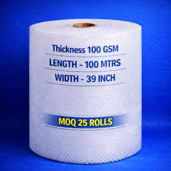 AIR BUBBLE FILM – WIDTH 39 IN, LENGTH 100 MTRS, 100 GSM (MOQ – 25 ROLLS)